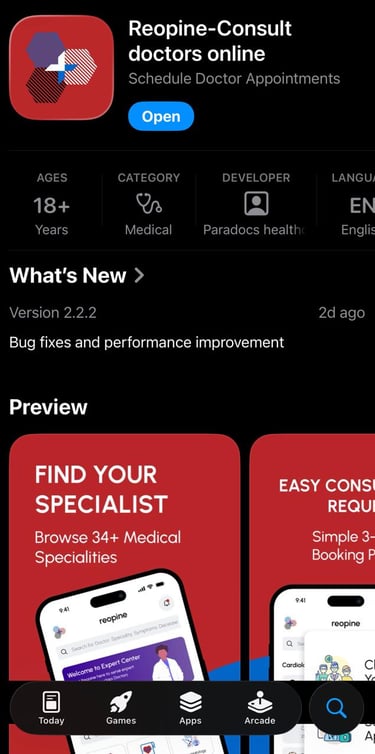 'Reopine-Consult doctors online' App is available for Android(Playstore) & IOS(Appstore)